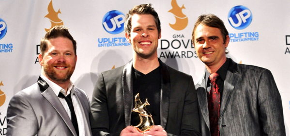 Nashville, TN (October 30, 2013) -— The Difference Media debut recording by Canton Junction garnered a Dove Award for Southern Gospel Album of the Year at the 44th Annual GMA Dove Awards, held recently in Nashville. Pictured backstage at Lipscomb University’s Allen Arena are (from L) Canton Junction’s Shane McConnell, Aaron Crabb and Tim Duncan (not pictured, Pastor Matthew Hagee). Canton Junction’s self-titled debut tied with the Gaither Vocal Band’s Pure and Simple in the Southern Gospel Album category. Produced by Michael Sykes and Aaron Crabb, Canton Junction features the #1 single “Hold On.”
